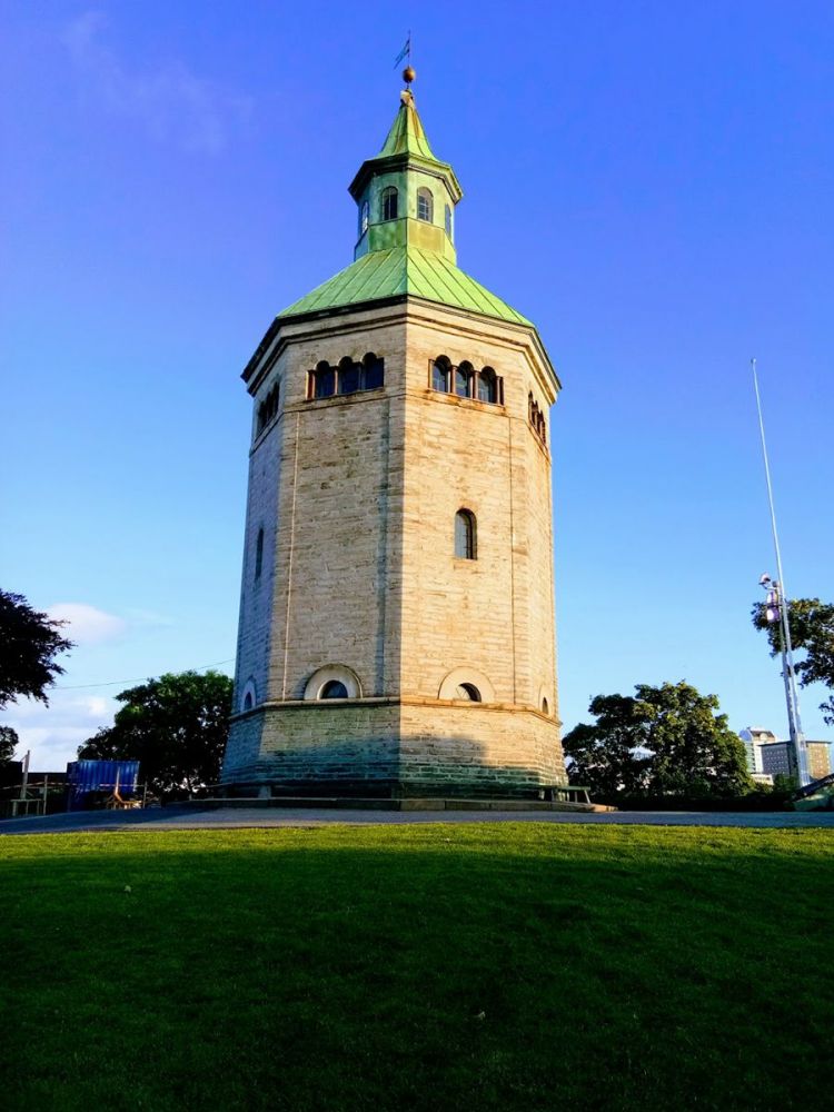瓦尔贝格塔(Valberg Tower)拥有铜绿色的尖顶、特殊的八角形外形和位于市中心山顶的显著位置,是斯塔万格与大教堂并列的最重要的地标。它曾是城市卫兵的瞭望塔,在斯塔万格的建筑大多由木屋组成的时候,它在防火方面发挥了重要作用。它作为火警瞭望塔的作用早已不复存在,瓦尔贝格塔现在已成为一座受保护建筑,除了作为“城市景观的良好和特色特征”之外,没有任何功能,正如塔被列入保护名录时的描述。它显著的位置提供了斯塔万格的绝佳景色。