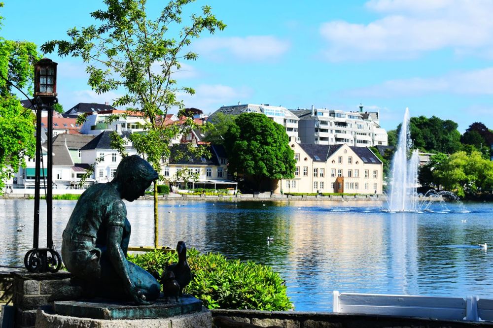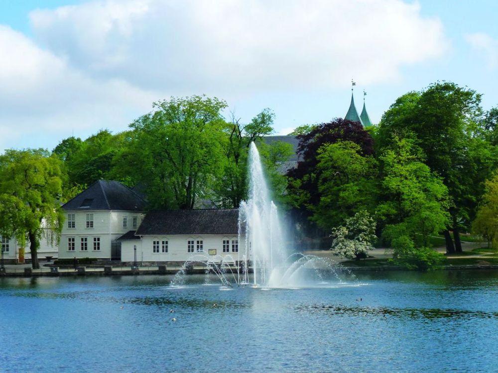 Breiavatnet 是斯塔万格市中心的一个小湖。它自然形成,但现在沿岸的回填和砖砌边缘使它看起来像一个人工湖,完全融入了公园。湖中间有一个热闹的喷泉,是许多受欢迎的鸭子和天鹅的家园。