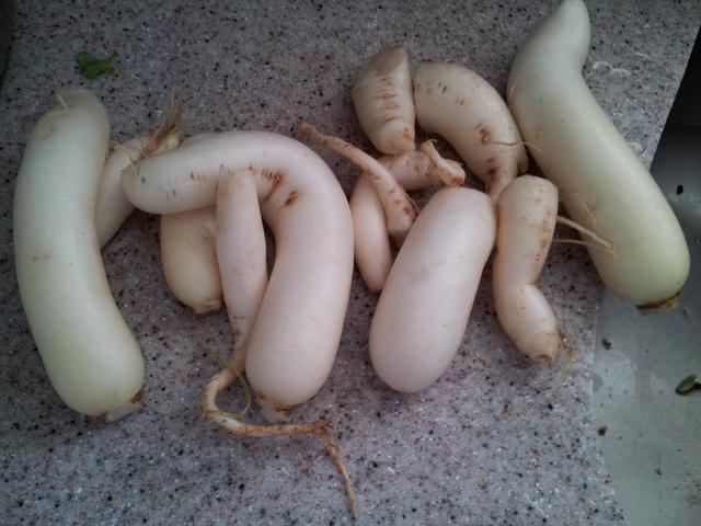 说起来这不爱吃萝卜的习惯也不只是我们家有,隔壁家就经常把一大堆萝卜剁碎了拿大锅煮了来喂猪,里面掺一些糠麸碎米什么的,二哥总能吃的稀里哗啦,还摇头晃脑的摔的到处都是。记得有一回他们家萝卜籽撒得过密,结果萝卜秧子长得挤挤挨挨一片,眼看着是长不成大萝卜了,正好有一天一群人闲来无事,小媳妇大姑娘的十来个人在他们家聊天,想着不如去拔了小萝卜来当水果吃,权当间苗,结果拔来的萝卜真的只有人参一般大小。好在用井水洗干净的小萝卜,被碧绿的叶子衬托着白嫩异常,真是可以掐出水来的感觉,倒成了我对萝卜的最佳记忆。