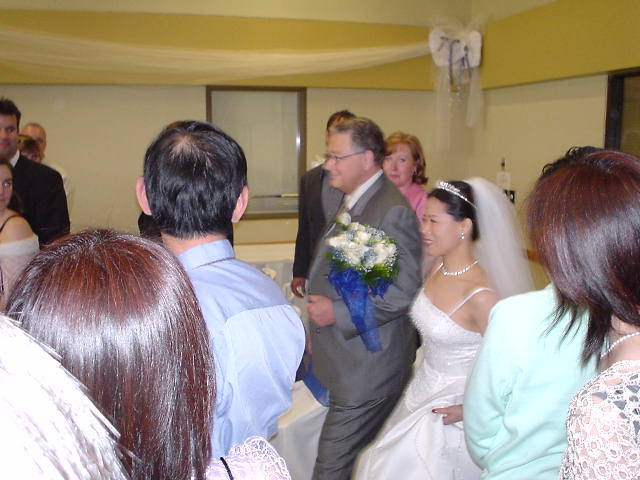 婚礼仪式在下午三点,人数我记的好象是80人左右,参加婚礼的人都是我先生的亲戚/朋友/同事及我的同事/朋友,当婚礼进行曲