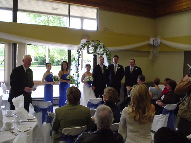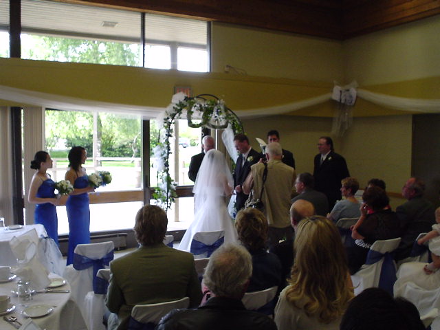 筹备婚礼是个非常繁琐的过程, 特别是对刚踏上异国他乡不久的我来说,除了花费预算以外, 从选择场地到发请帖, 从选择证婚人/伴娘伴郎/摄影师到餐饮的菜单, 从礼服的样式/颜色/款式到桌布/坐椅的安排,从大厅的插花装饰布置到音乐选择,事无巨细...., something blue, something new, something old ,something borrowed(入乡随俗 ),在准公公和婆婆的帮助下,总算一切就绪。