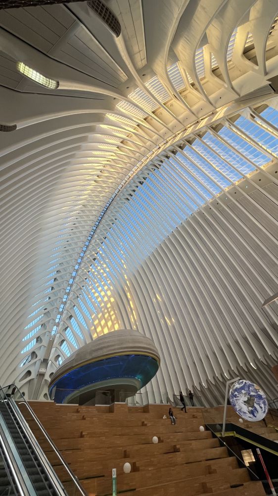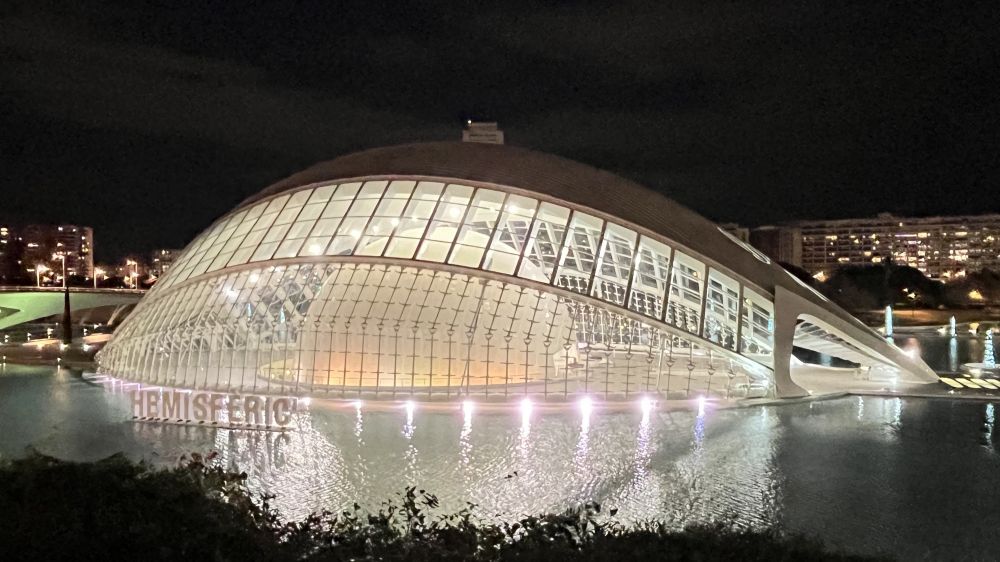 艺术科学城的中心,矗立着像巨大眼球一样的天文馆,有“智慧之眼”之称。天文馆的曲面玻璃幕墙有液压升降机推动,上下开启与闭合露出里面的球形天文馆,在水面映射下就像是一张一合的眼睑。内设IMAX电影院和天文馆,为游客提供天体影院的震撼之旅。无论是仰望星空还是沉浸在IMAX电影视觉效果的奇妙之中,她将您带入一个充满探索和想象的宇宙。