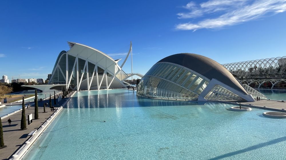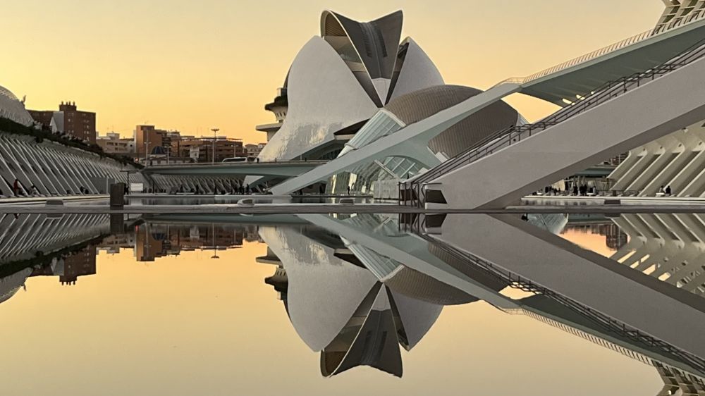 艺术科学城除了海洋世界是有结构建筑师菲利克斯-坎德拉(Félix Candela)设计外,其它都有圣地亚哥-卡拉特拉瓦设计。巴萨罗纳是高狄建筑的圣地,瓦伦西亚可以说是卡拉特拉瓦的成名福地。瓦伦西亚艺术科学城的设计建设是成功的,建筑群体的布局,单体建筑的设计,城市空间的比例尺度都很优秀。水面的设计更是营造出梦幻般空间气氛。高狄设计给人看的是建筑的外观艺术,卡拉特拉瓦设计展示的是结构与建筑,既示“颜值”又展“技术”,一方面颇受争议,但也让爱的人赞叹不已,对于建筑和摄影爱好者及普通游客来说,这种冲击力是难以抗拒的。他用现代技术做出另一个流派,他的设计为我们展示了未来的样貌,难怪成为多部好莱坞电影电视剧的拍摄地,比如《明日世界》(Tomorrowland)、《西部世界》 (Westworld)、《星球大战》(Star Wars)。
