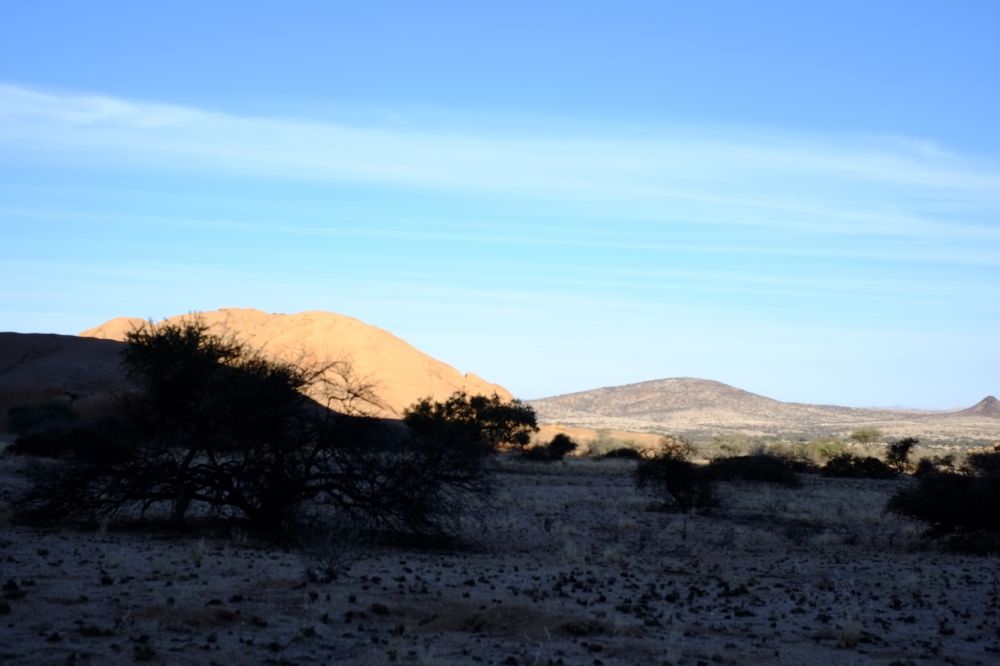 纳米比亚的Spitzkoppe是个几百公里内不见人烟的奇特的地方, 据说那里的山和石头有20亿年老, 是地球上最古老的地质。 我与几个临时驴友决定在这荒郊野外搭帐篷过夜。