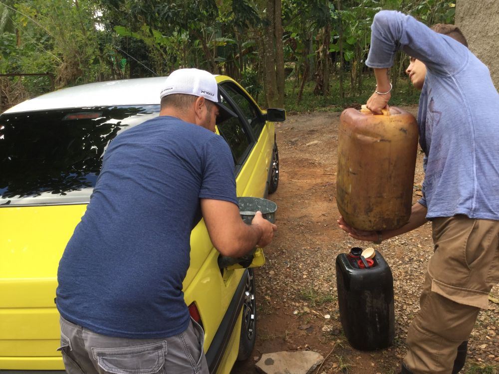 途中加油。古巴的加油站的价格比美国还贵。 对一个月平均15美元的人来说, 肯定太高了。 驾驶员拐弯抹角来到了一个偏僻的地方, 估计是买偷国家的油。