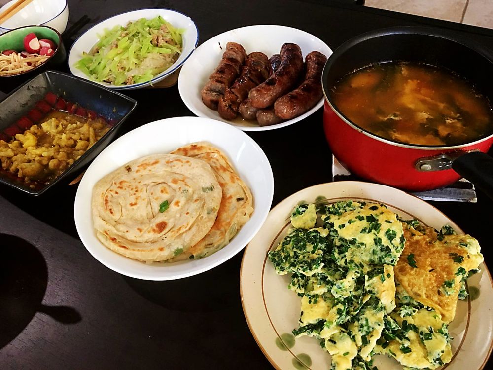 烤鸭的油做了鸭油葱花儿饼,顺便烙了两张芝麻酱糖饼,还是糖饼好吃????。