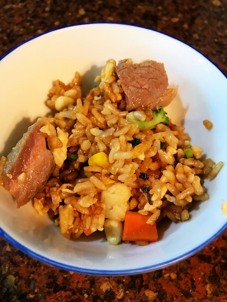 跟同学学的牛肉粒炒饭,很香,小朋友特别喜欢吃里面的肉肉。