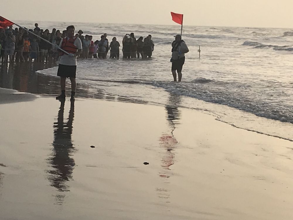 每年晚春初夏,Kemp's Ridley海龟都会到Padre Island National Seashore产卵,到仲夏,小海龟就孵出来啦。因为这种海龟是世界上最珍稀的海龟品种之一,National Seashore的工作人员都是把蛋收集起来,集中孵化,再人工放回墨西哥湾里去。这个放小海龟的活动就成了每年夏天Padre Island的一个重要节目。网上有个热线电话,脸书上也有随时更新,因为每次海龟的孵化时间只是个估计,要头一天打电话或看脸书才能确认第二天是否有放海龟的活动。