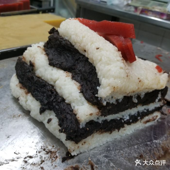 花式年糕、切糕现在有白糯米、黄黏米和紫米夹豆沙、小枣馅儿的,那会儿紫米不多见。