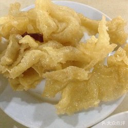 姜丝排叉 – 炸好的排叉外面裹上透明的糖稀,不是糖耳朵那种金黄的糖稀,就是无色透明的,还能看到排叉的浅黄色。糖稀是用姜丝熬过的水熬糖,吃的时候就有了一丝姜的香辣味,又有排叉的酥脆感,好吃。