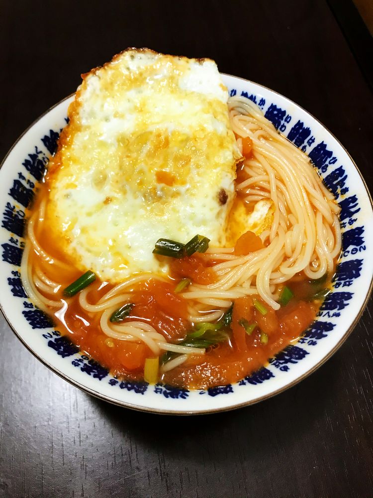 番茄煎蛋面,加了点儿番茄火锅调料,味道更足了。