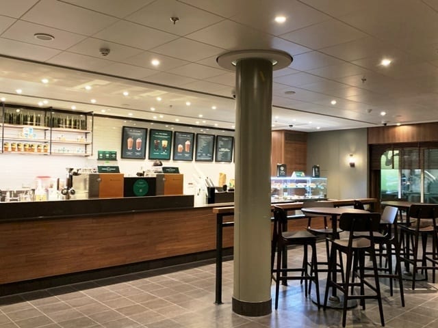 船上的咖啡不如Carnival上的好喝,没什么香味。但会发几张免费星爸爸券,可以在船上喝星爸爸家的咖啡、拿铁喝卡布奇诺,或者吃点心。这家星爸爸和陆上的一样宽敞,除了价格别的没差。