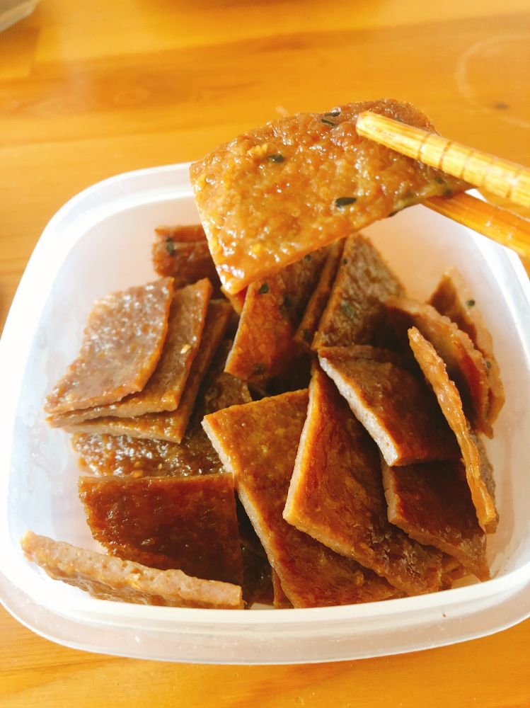 多年前在文学城上看到过一个猪肉脯的食谱,曾经做过几次,很不错。可是太久了早忘了具体的成分了。
