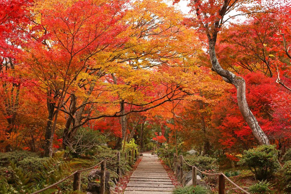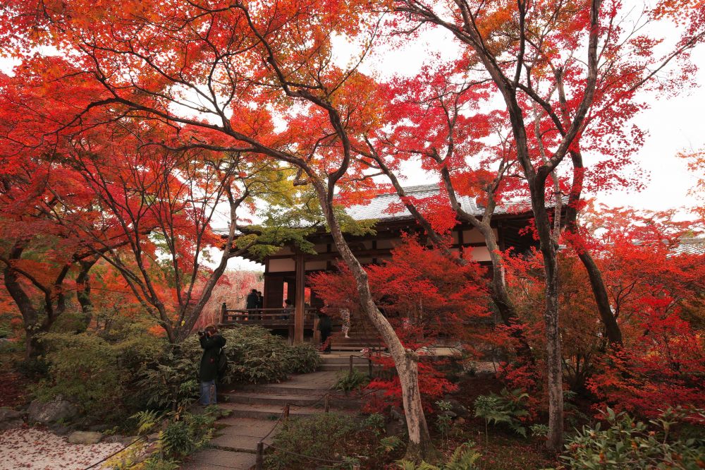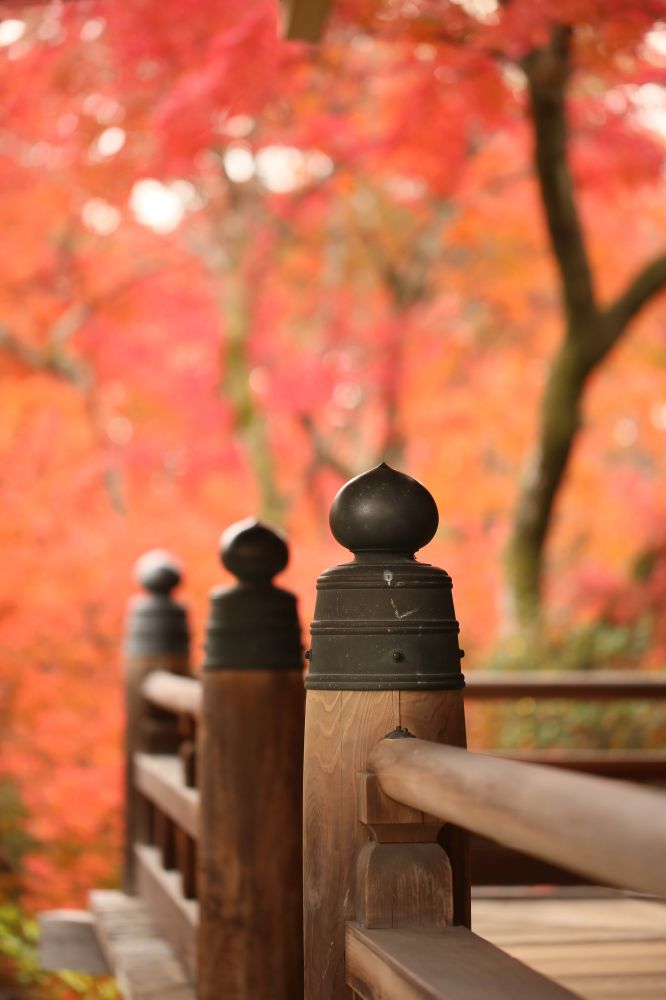 临济宗寺院宝筐院在岚山嵯峨野,庭院小巧玲珑,深秋的红叶色彩绚烂饱满夺目,那天我到宝筐院,刚转入内庭,猛一见到那满园的红叶,刹那间竟有置身画境的错觉。之前曾到永观堂、南禅寺、东福寺等赏秋名所拜观,好像也没有这种震憾的感觉。