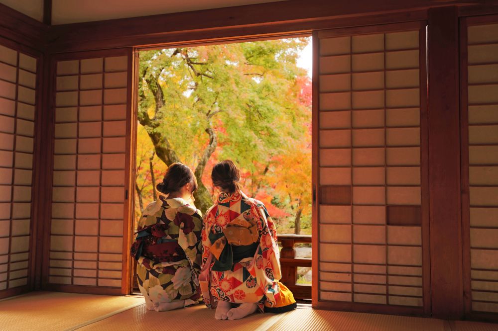 京都游客多有租借和服闲逛者,色彩大多艳丽,适合小姑娘们穿,像我这种大妈就免了吧,折腾半天,自己看了都不高兴。那天在宝筐院照相间,突然有两个小姑娘走入镜头,吓我一跳,再一看,跟这满园秋色配合的天衣无缝,耳听得旁边相机快门声卡擦不断,我也趁势拿下这个画面,成为我这次京都红叶之旅少数几张得意佳作之一,厚脸皮摆在第一张。不过,我的得意,很有可能是别人看不上眼的俗品,那就顾不上了,只恳请大家别拍砖就行。