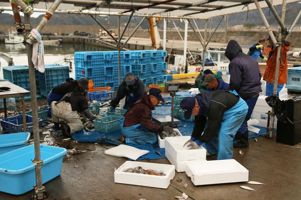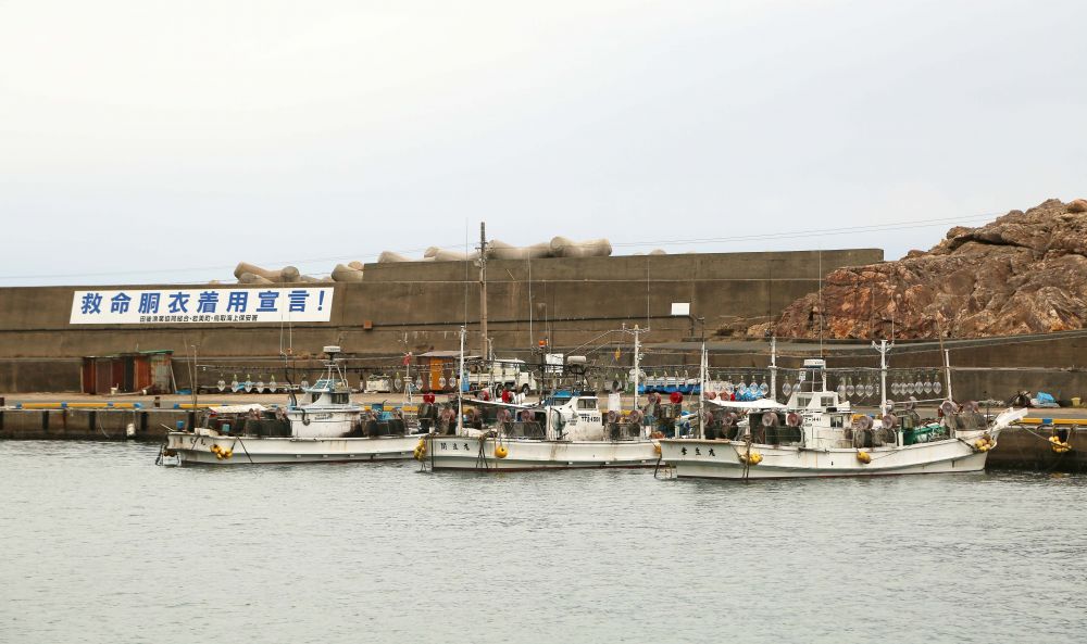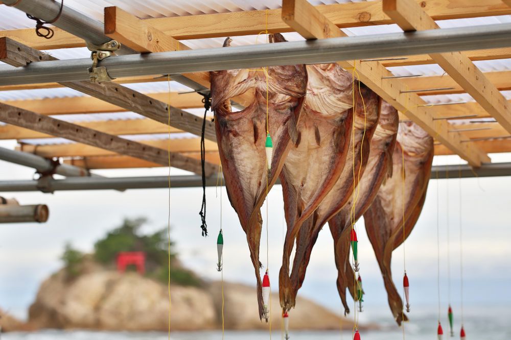 浦富海湾(岩美)渔民晒鱼干