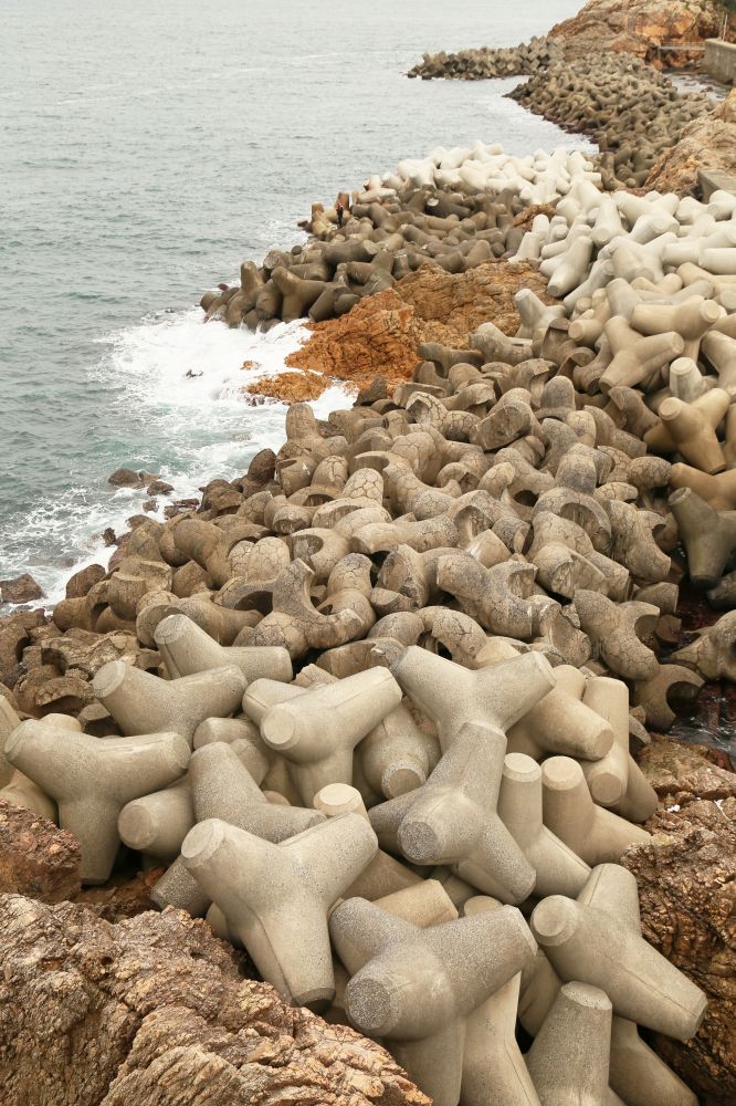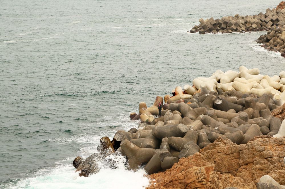 看了一会儿才注意到防波石上有人站着钓鱼,看到了吗?