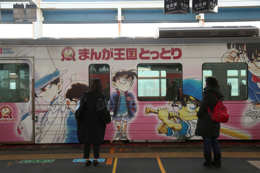 五日通票从大阪往西北方向最远可以到鸟取,当然要好好利用这个机会走一遭啦。鸟取在山阴,临日本海,从京阪地区过去交通不太方便,所以跟比邻而居的岛根县向来是观光冷区,算是一对难兄难弟。我想去看的景点是鸟取砂丘和浦富海岸,另外县内靠西端的仓吉市北荣町号称柯南的故乡(其实是作者漫画家青山刚昌的家乡),也被大力推为景点,为了吸引观光客,鸟取政府也真下七马力拼了,不但把机场正式改名为鸟取砂丘柯南空港,就连当地火车也刷成柯南专列,眼看政府这么上心,我真心希望他们能因此提高观光收入,这次时间不多,就不去打扰柯南他们了。