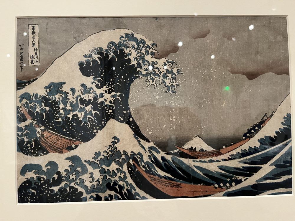 这是版画。前一阵刚看了个电影简介,是讲葛饰北斋的女儿的故事,也是个了不起的画家,不过被父亲的名声掩盖了,大家都不[