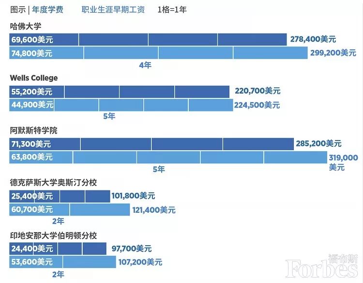 在上述高校就学的平均成本为每年4.5万美元;皮尤研究中心的一项新分析指出,从全美来看,49%不满30岁的毕业生背负贷款,本科学位的贷款中位数为2.5万美元。美国人的学生贷款共计约1.5万亿美元。对于多数家庭来说,选一所四年制大学是一生中最大、最昂贵的决定之一。对于学生来说,这段人生中的幸福时光或许会给你的未来计划带来压力。请大家慎重选择。