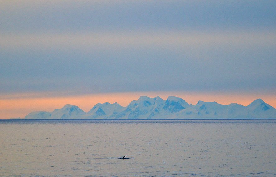 1,午夜时分南极海域的天色,水波,冰山,鲸鱼和企鹅(冰块上有企鹅)