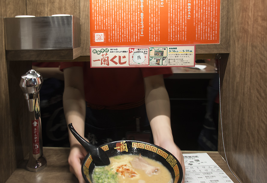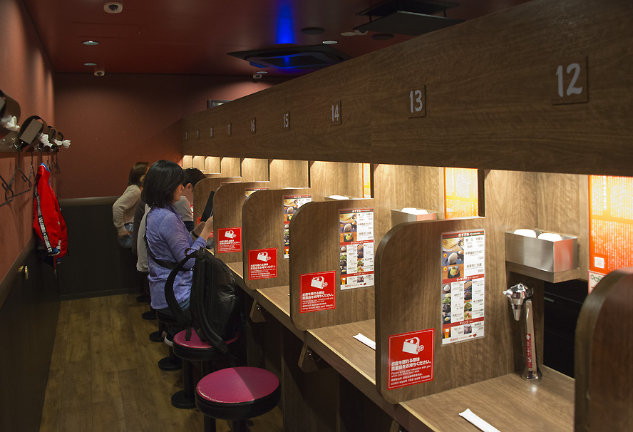 为了提高店面周转效率,店小二适时给每个无所事事等候着的客人发一小张面店的预定菜单,让你把要吃的面和所要放的添加物一一圈好,以便一落座就可下菜单。这可是日本店家精打细算的高效率,不然何来一店一天4471人的亮眼数字,以及由此一年两千四百多万美元的销售额(按平均每人消费15美元计算)。
