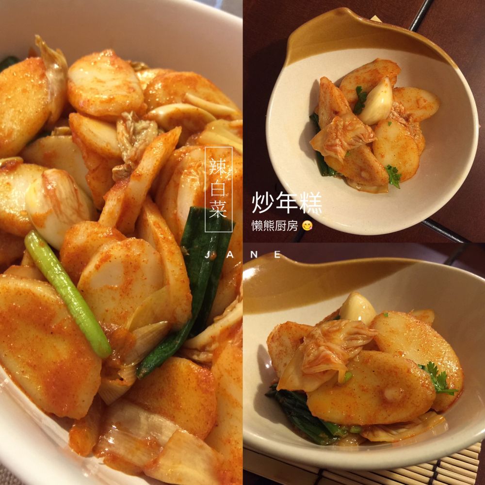 食材:年糕,辣白菜