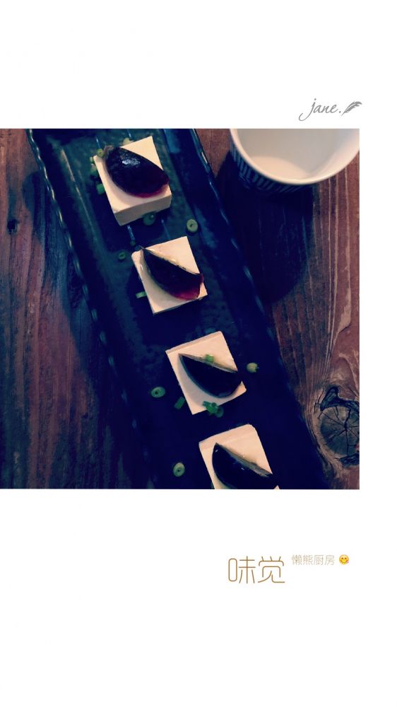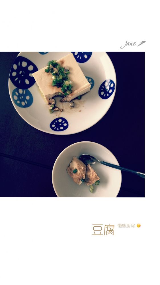 自制豆腐,豆香浓郁。简单的小葱拌豆腐就非常好吃。还加蒸鱼豉油和橄榄油。