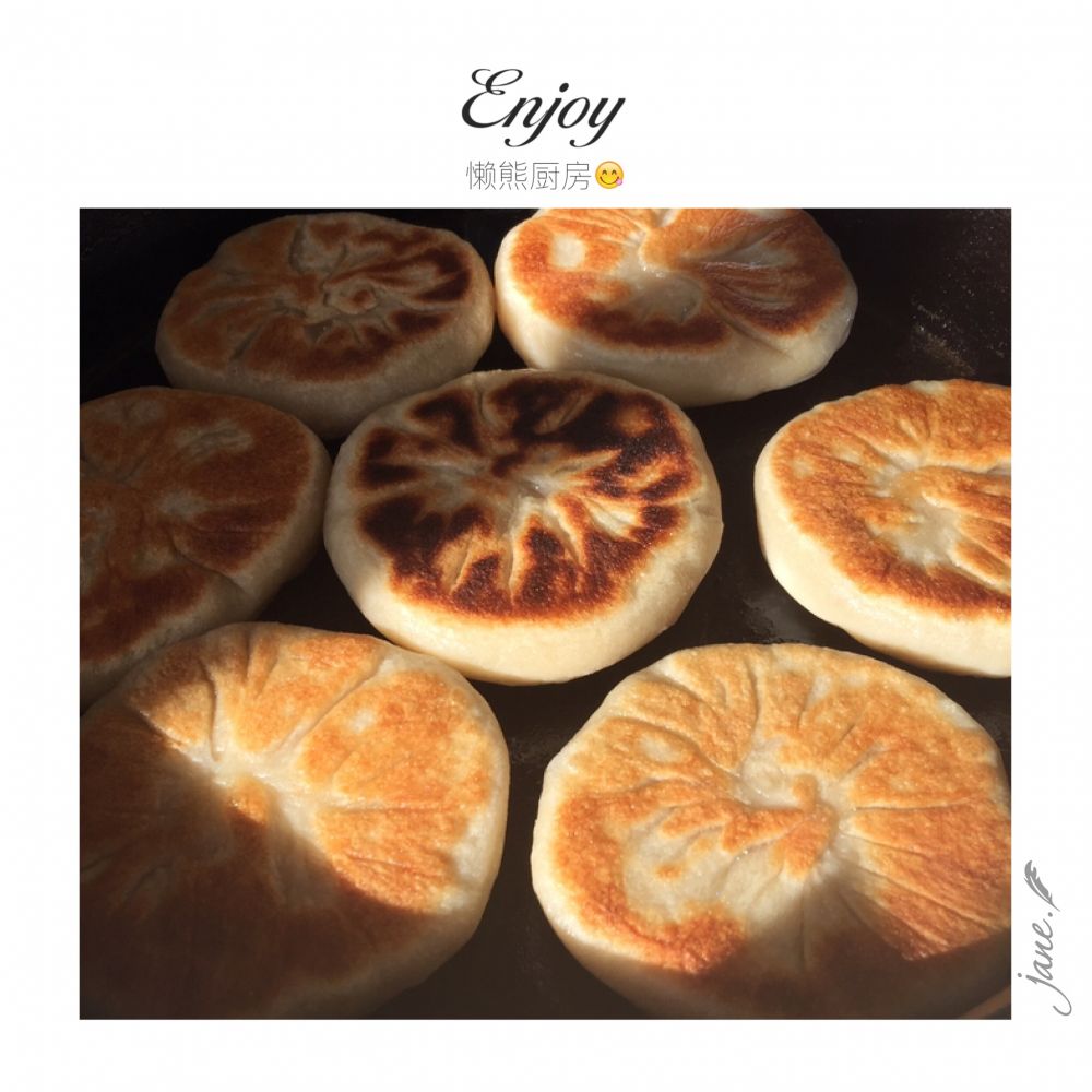 包好的火烧入烤箱,或用平地锅煎至两面金黄。烤箱可能会干一些,不过我喜欢硬硬的皮。