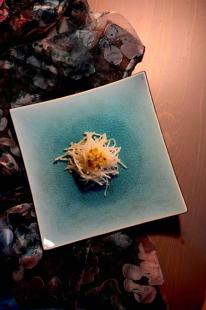 做法:绿豆芽去根去尖,焯水。并立即入冰水降温,然后空干水分。加橄榄油,姜末糖盐拌匀。