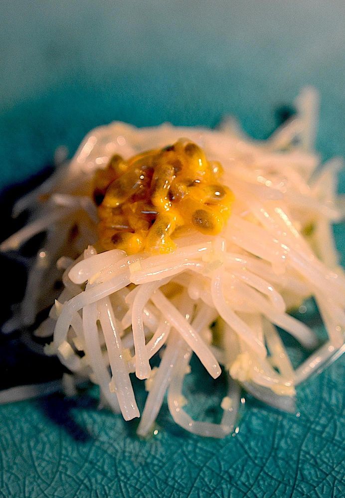 最后加入百香果调 味。这款豆芽一定要有酸度要够,少许糖即可。