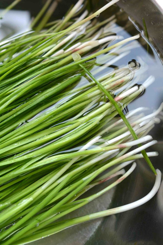 自家韭菜,长势不好但也够吃了。韭菜与海鲜非常搭,鲜贝水饺加韭菜是不二地选择。