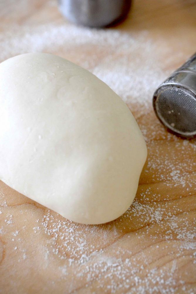 撒少许面粉,用手掌轻轻将剂子滚成球,然后按扁。注意不要有揉搓地动作。