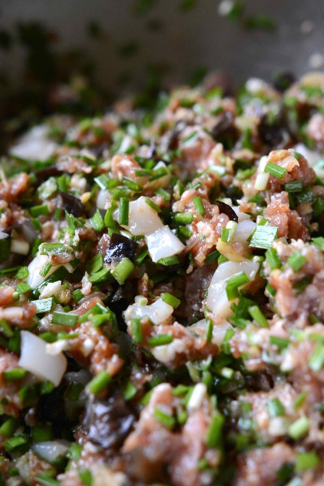 2)调馅:各种馅料切碎