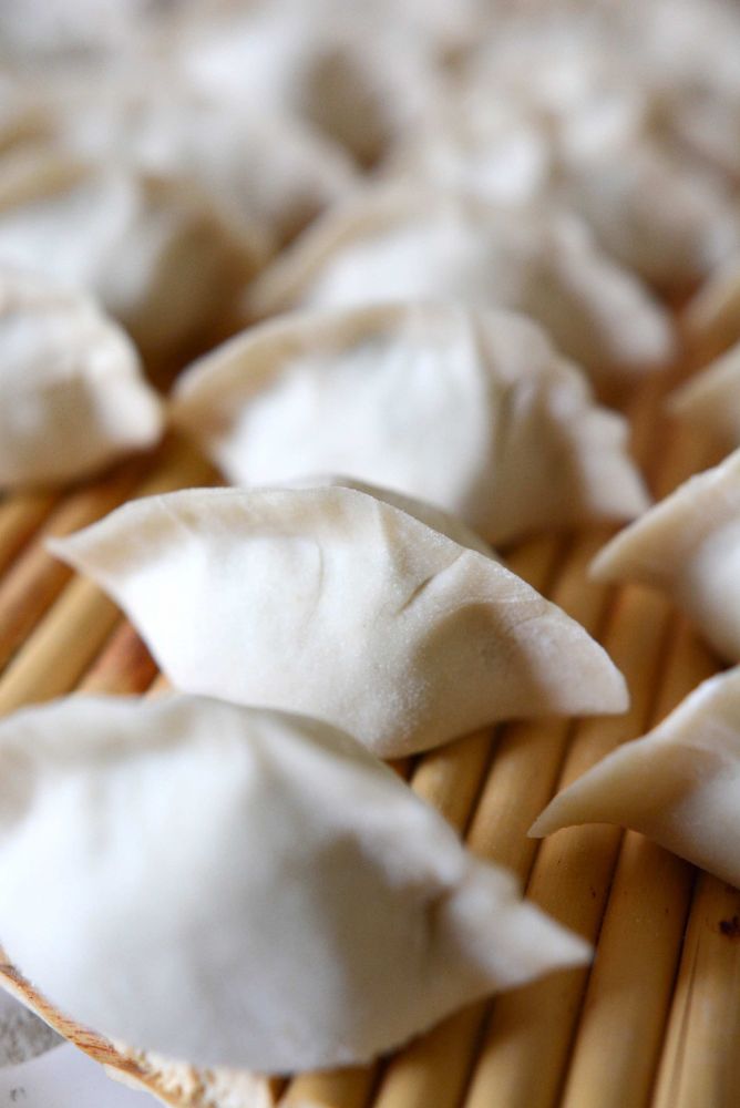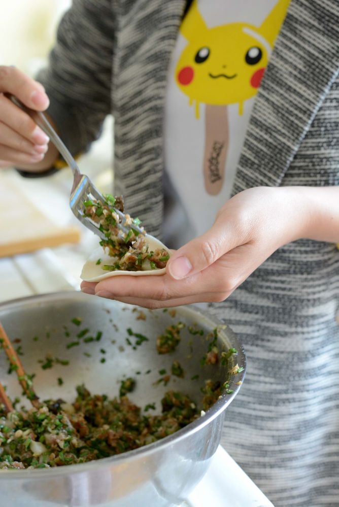 3)包饺子:面粉属于中筋面粉,比饺子粉筋力大。操作不好擀的饺子皮容易回缩。请特别注意以下操作要点: