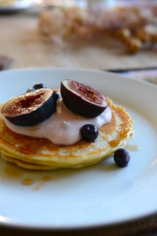 无花果,蓝莓,酸奶和糖浆