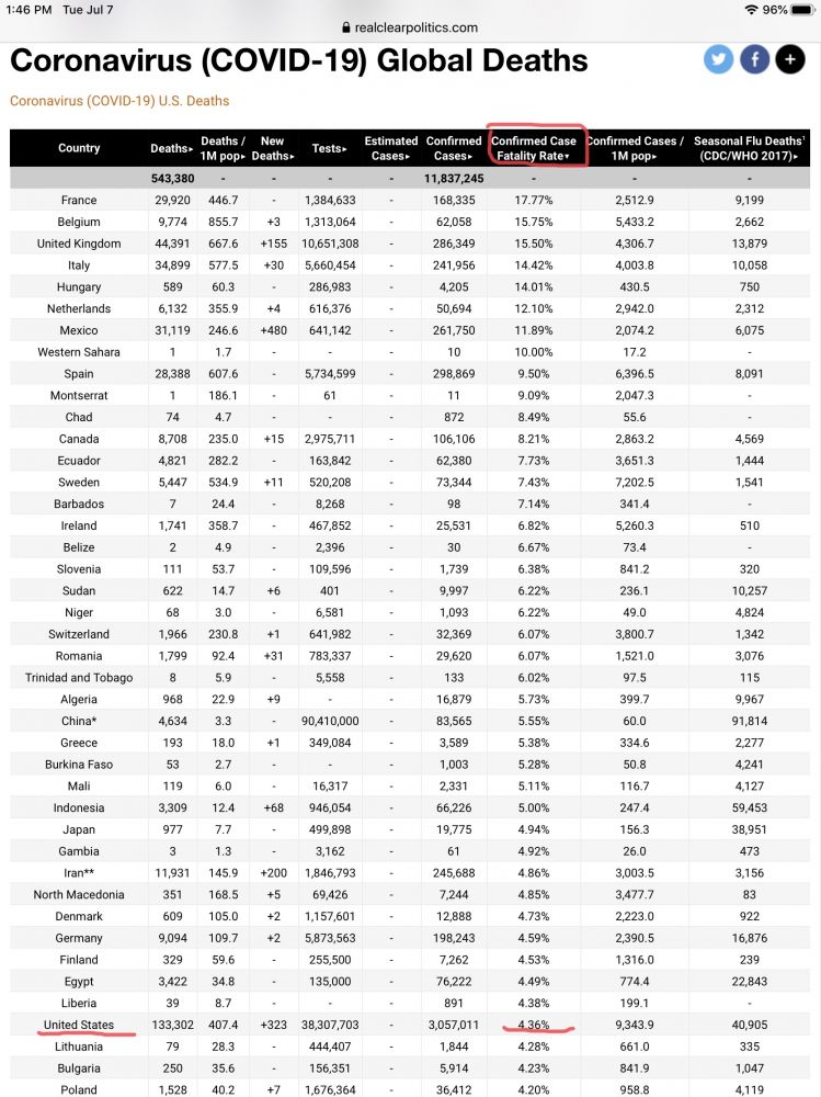 再来看疫情, 从死亡率的角度看, 美国排在几十名国家之后, 现在是4.36%, 这么看来相比之下还是不错的. 开工还是封锁, 就跟任何药物一样都有risk and benefit 二面, 就得看overall 是否利大于弊. 重要是每个人要为自己的行为负责.