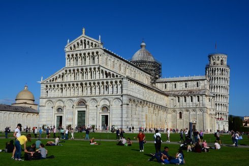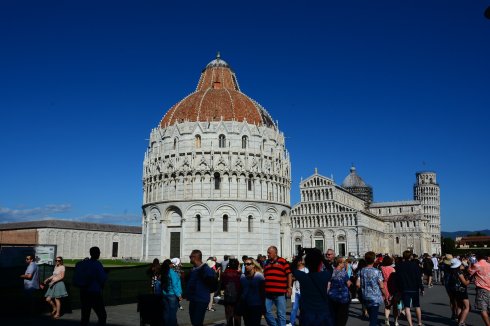 胡思乱想中,巴士就把我们带到了比萨城。下午3:30 ,车停在了比萨教堂区附近的一处大广场上。说是很近,步行也要十几分钟。导游说巴士仅能在这里停一小时,我们必须在4点半前赶回来,时间真的是很紧迫啊!
