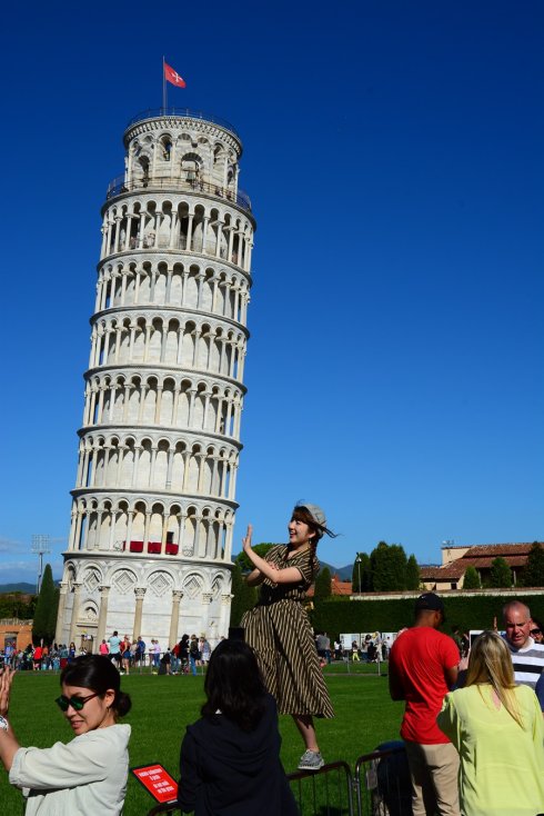 凡来观看比萨斜塔的人都喜欢在塔前摆出这种姿势。