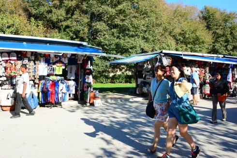 从停车场到教堂区要路过一个小商品街,销售各种纪念品,艺术品的小店铺一个挨一个,还有一些黑人手持着自拍杆之类五花八门的玩艺儿沿街兜售。上次来怎么不记的有这么个小商品街呢?也许是近几年才出现的吧?