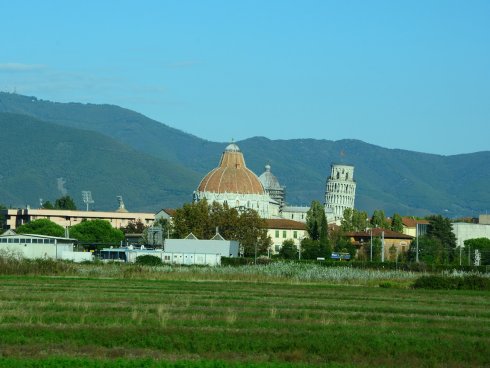 在乘车离开比萨返回港口的路上,最后一次回首眺望比萨斜塔的倩影。