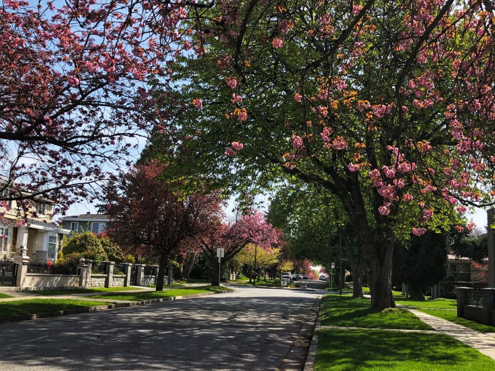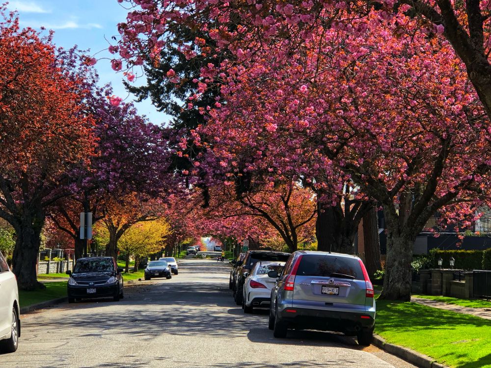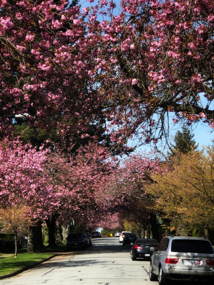 关山樱是温哥华分布最广,也是开得最灿烂的樱花。在关山樱花盛开的时节,几乎所有的大街小巷都有粉红色的花带和花隧道,令人忍不住要多看几眼,惊喜不已。