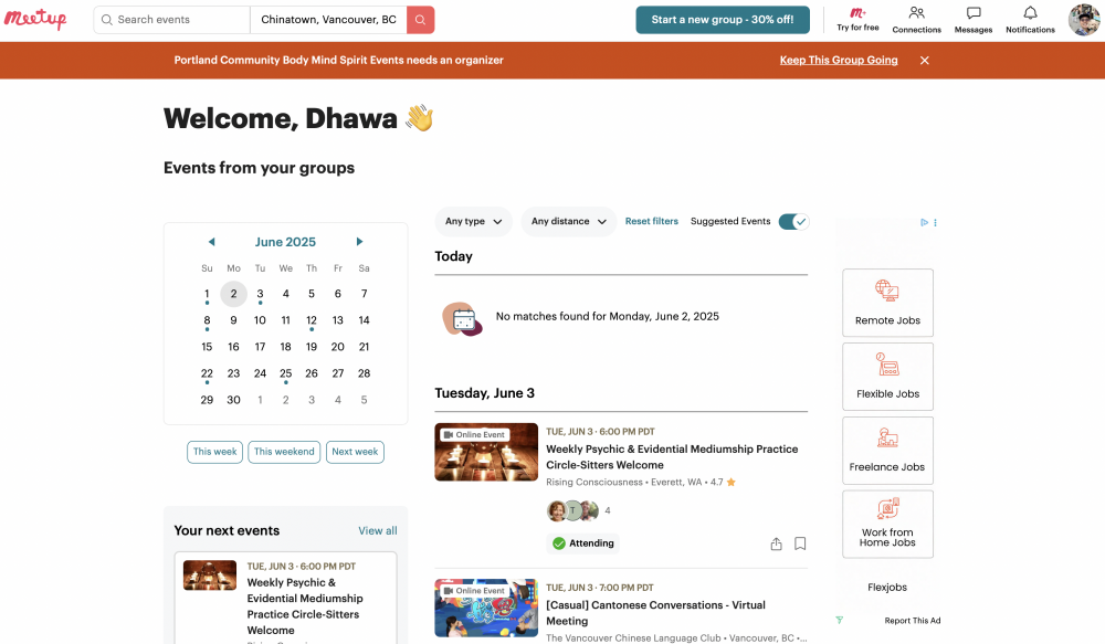 看看我的挂历,六月份我的meetup聚会都排满了。是不是很有意思?