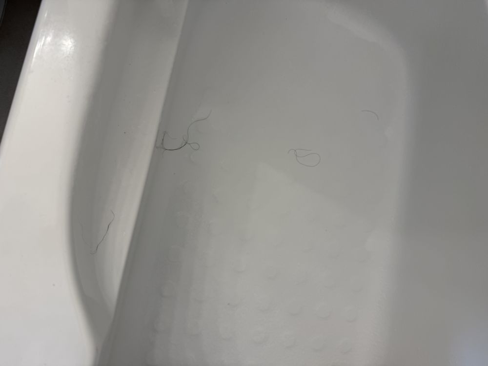 上图是韩国客人每次洗澡后留下的一浴缸头发。欧美客人还从未有过这种情况。