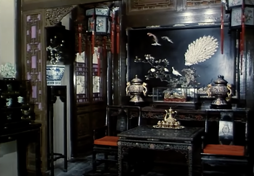 北影厂不愧北影厂,制作还是很考究的。黛玉进府,即便匆匆闪过的一个镜头,也摆放了很多黛玉的行李箱。
