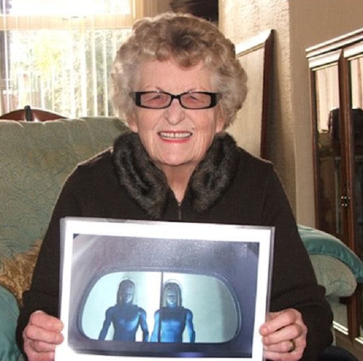 上图:1954年英国著名UFO目击事件见证人杰西•罗森堡(Jessie Roestenberg)就声称亲眼目睹到了北欧型外星人。当时她29岁。