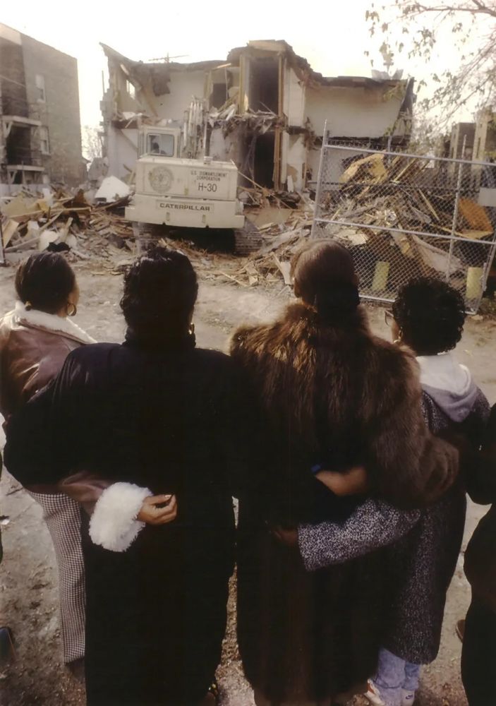 上图显示杀人分尸过的公寓没法住了,政府只好索性拆掉。租户全部搬离。