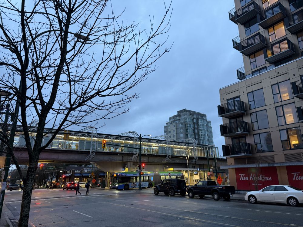 这一路目睹了斜风细雨中人来人往的上班场景。好在温哥华冬季极少低于零度。但是因为纬度高,且冬雨连绵,七八点仍然一片灰蒙。容易抑郁的人会更加抑郁。