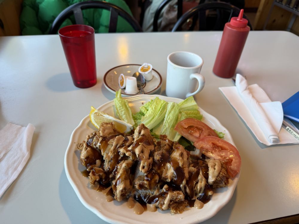 小镇没有超市,瓜果蔬菜、柴米油盐,都要从半小时车程外的城市运送来,所以吃个饭肯定便宜不了。第一天的午饭,含小费,30多加元。