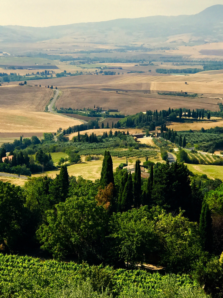 来到托斯卡纳,是在膜拜了罗马的辉煌之后。从厚重的斗兽场墙壁、精雕细琢的肃穆教堂以及对古罗马人厮杀的意象中脱离出来,当看到这满眼缓缓起伏的丘陵和洒满了阳光空荡荡的悠闲小镇,在这处远离喧嚣的田园之地,我的心安安静静地停滞下来,整个身体轻轻然游荡着,让时间停摆的感觉真好。